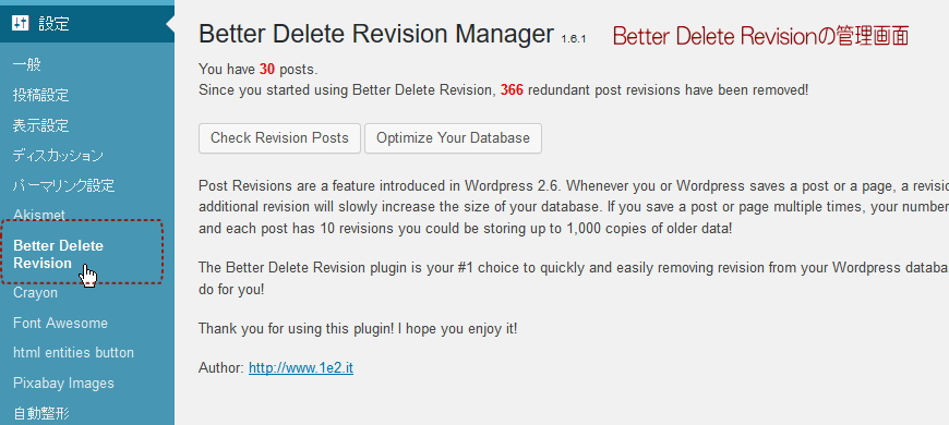 リビジョンが溜ったらワンクリックでスッキリできる優良プラグインだと思います。