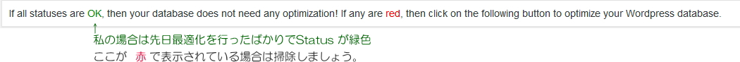 赤で表示されてたら、WordPressのデータベースを最適化するために、以下のボタンをクリックします。